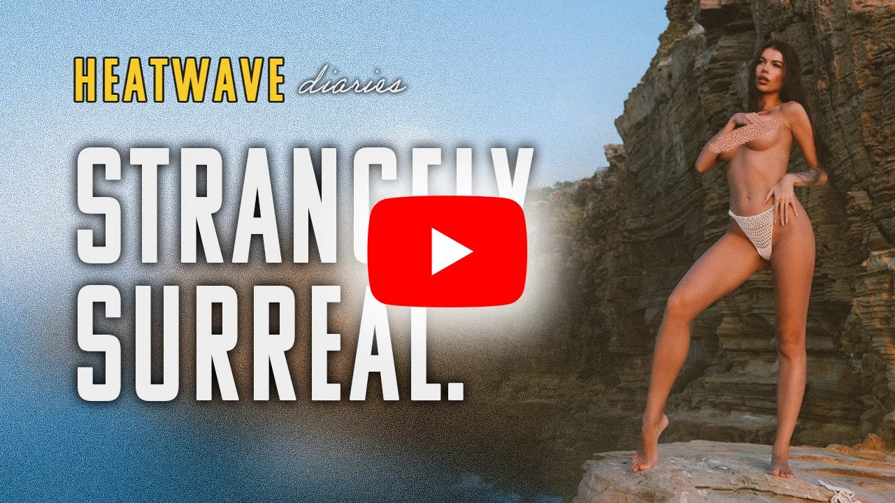 Ya no se sentía como una sesión. Se sentía fácil. Tranquilo. Como pasar tiempo con alguien que parecía demasiado perfecta para ser real, y que sin embargo estaba ahí, sentada sobre la roca caliente, completamente a gusto. La presión había desaparecido. El posar quedó en segundo plano. Todo se volvió simple. A mí me gusta hacer fotos. A ella le gusta ser fotografiada. Y dejamos que eso ocurriera.