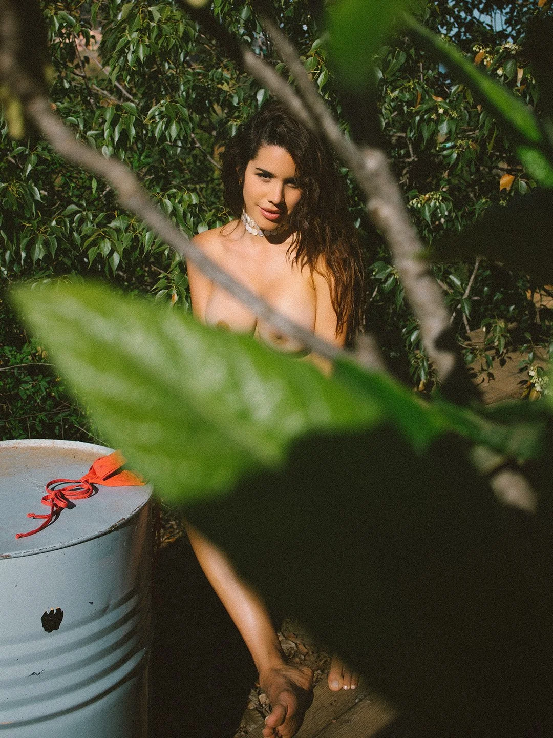 I stepped behind a few branches and shot from there. That voyeuristic feeling. Like catching something you’re not quite meant to see. Like she’s just a neighbor in the garden and you’re looking through the leaves at exactly the wrong — or right — moment.
